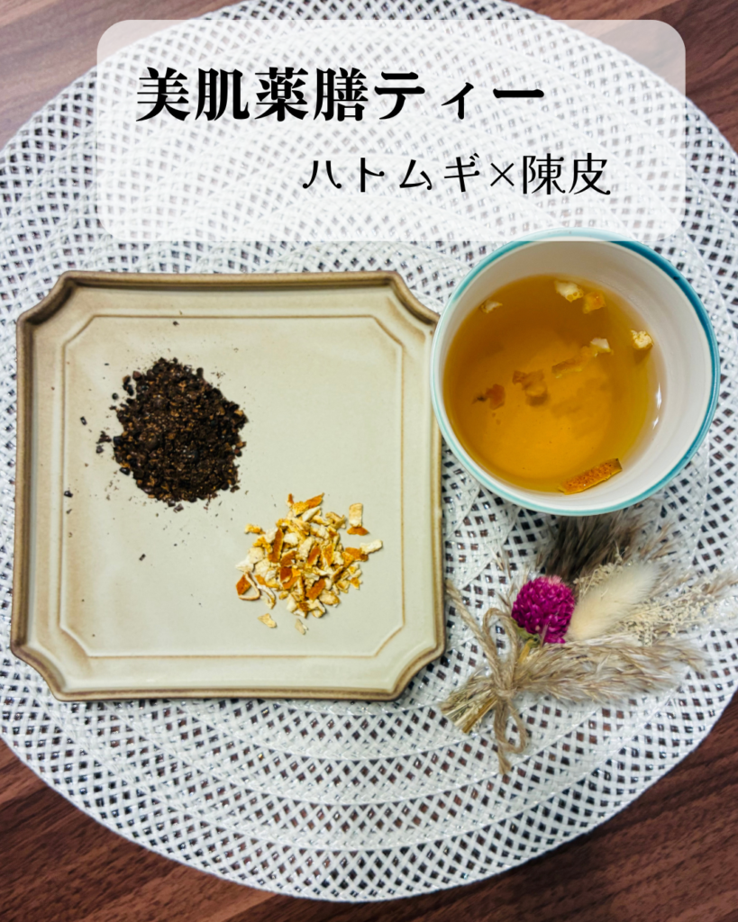 ハトムギ美肌チャレンジ!ハーブ2026.04.09こんにちは~40代も半ばになり、シミが気になってきた今日この頃・・・・こんなときは、ハトムギ!美肌や美白の作用のあるハトムギ。この春夏はハトムギで美肌を目指してみようと思います。今回ブレンドしたのは陳皮。ハトムギは涼性で体を冷やしやすいので、温性の陳皮をブレンドしました。陳皮の爽やかな香りも加わり美味しくいただけます。今後はオススメの薬膳ブレンドをご紹介していきます。ぜひ、毎日の薬膳のヒントにしてみてくださいね!ではまた!